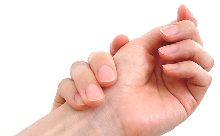 手の親指の付け根から手首にかけてジンジンするような痛みが特徴で、手を使うと症状が増悪します。