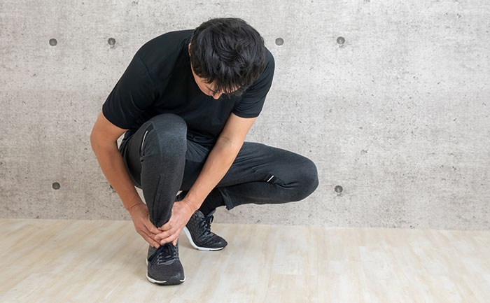 運動している時や歩き始めの時にふくらはぎからかかとにかけて痛みが出たり、アキレス腱(かかと付近)に腫れが生じることがあります。