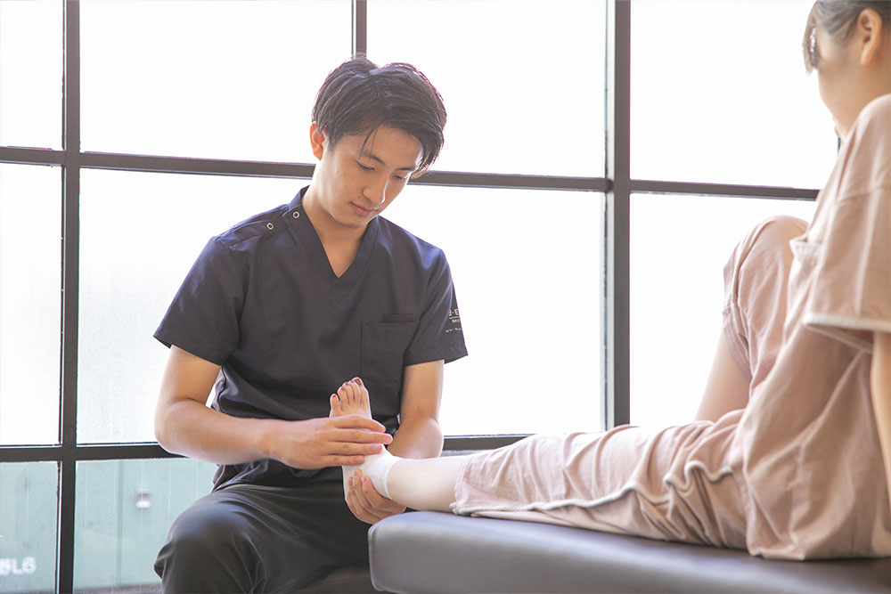 当院では、原因を的確に見極め、靴のアドバイスをしたり、姿勢の乱れがある場合には姿勢矯正施術も行って足の負担を軽減したりなど、あなたに最適な施術・指導を行っていきます。